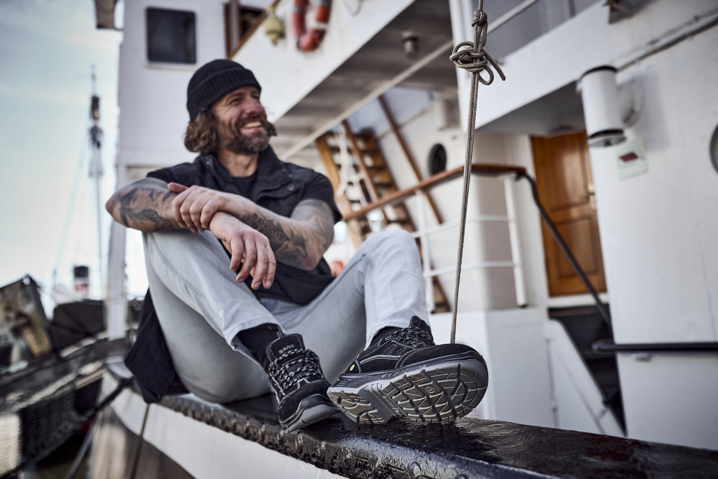 - Rutschhemmende PU-Sohle – SR-zertifiziert → sicherer Halt auf glatten Industrieflächen