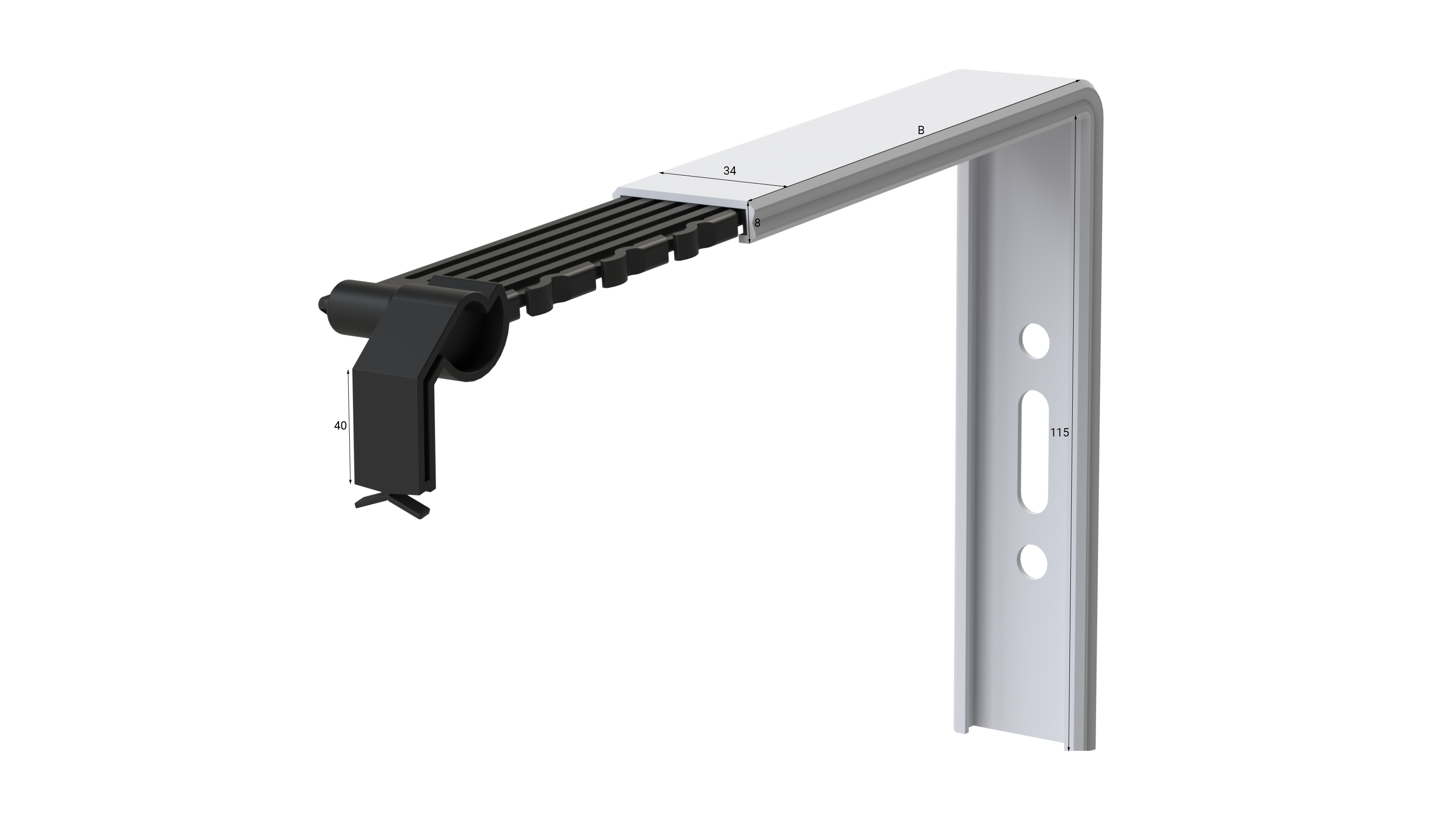 Das System verfügt über einen stufenlosen, gleitenden Einschiebling sowie einen aufsteckbaren, drehbaren Klips-Gelenkkopf, der flexible Verstellmöglichkeiten direkt auf der Baustelle ermöglicht. Dadurch kann der Halter exakt an die örtlichen Gegebenheiten angepasst werden ohne aufwendige Nacharbeit.