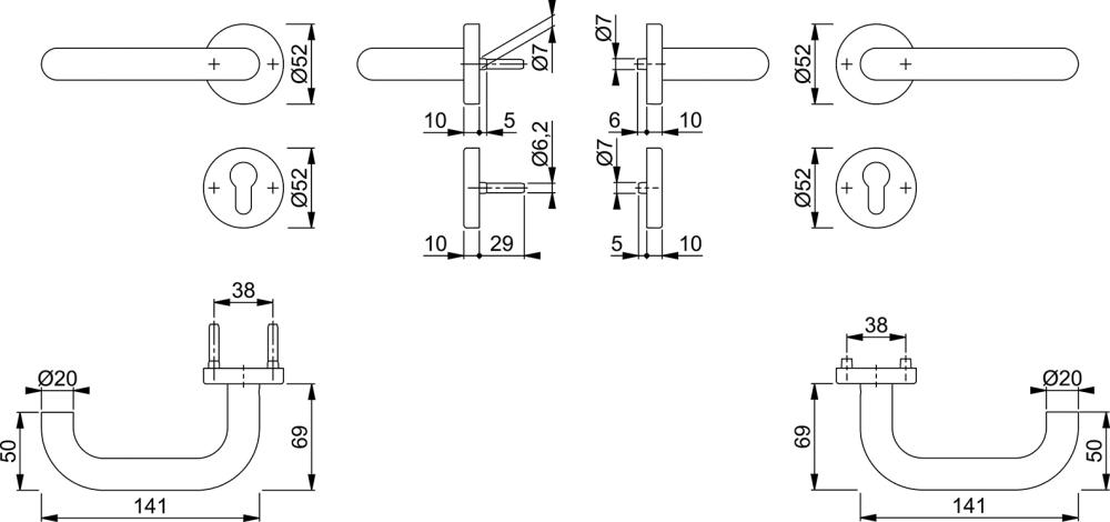 • Türgriff für HOPPE-Steckgriff-Verbindung mit Kugel-Arretierung Sertos®