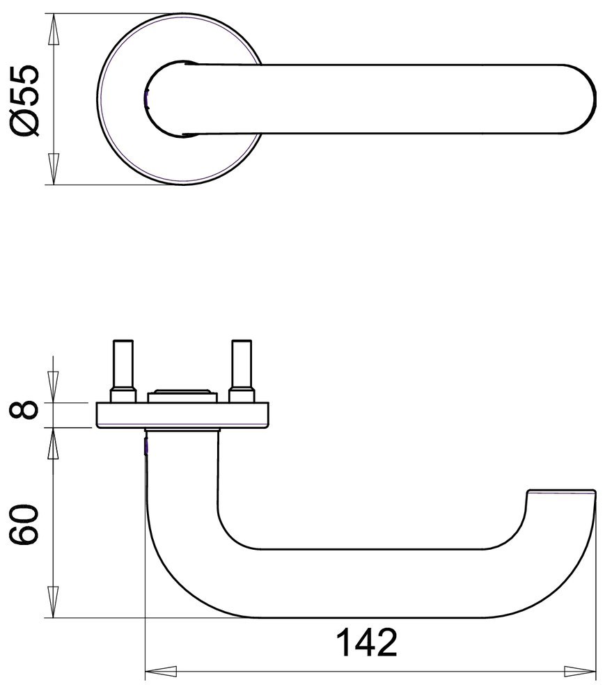 Format FS-Drücker auf Rundrosette U-Form mit Nocken, 9 mmm Vierkant, festdrehbar gelagert, EST 2103520000FOR 4317784667470