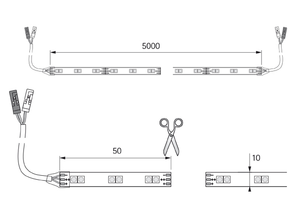FORMAT LED-Flexband Versa Plus MultiWhite; Ausführung: geringe Aufbauhöhe,individuell kürzbar; Schutzart: IP20; Befestigung: selbstklebend; Einsatzbereich: Möbel; Farbe: weiß; Breite: 10 mm; Länge: 5.000 mm; Leistungsaufnahme max.: 30 W; Lichtfarbe: multiweiß; LED Abstand: 16,6 mm; LED Anzahl je m: 120 St.; Max. Gesamtlänge am Stück: 5.000 mm; Basis: LED-Flexband; Stecksystem: M1/M2; Zuleitung: 2 x 1700 mm; Ausstrahlungswinkel: 70 °; Farbwiedergabe: 85; Beleuchtungsart: Akzentbeleuchtung; Dimmbar: Ja; Leuchttechnik: LED; Energieeffizienz: 58 lm/W; Kennzeichen: Schutzklasse 3,MM-Zeichen,CE; Lebensdauer: 30.000 h bei 70%
