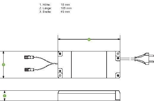 FORMAT Vorschaltgerät EVG; Spannung primär: 220–240 V; Steckersystem primär: Euroflachstecker; Spannung sekundär: 12 Volt DC; Einsatzbereich: LED; Auslastung max.: 15 W; Basis: Vorschaltgerät; Zuleitung primär: 3.000 mm; Zuleitung sekundär: 1 x 200 mm; Kennzeichen: CE,MM-Zeichen,Schutzklasse 3; Netzfrequenz max.: 60 Hz; Netzfrequenz min.: 50 Hz; Farbe: weiß
