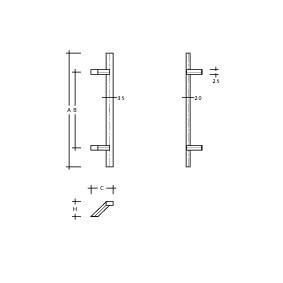 Format Stoßgriff Rechteckprofil 35x20mm schräge Stützen 45 Grad, H=80mm L=800mm, BA 600mm RAL 9005 637473 4317784637473