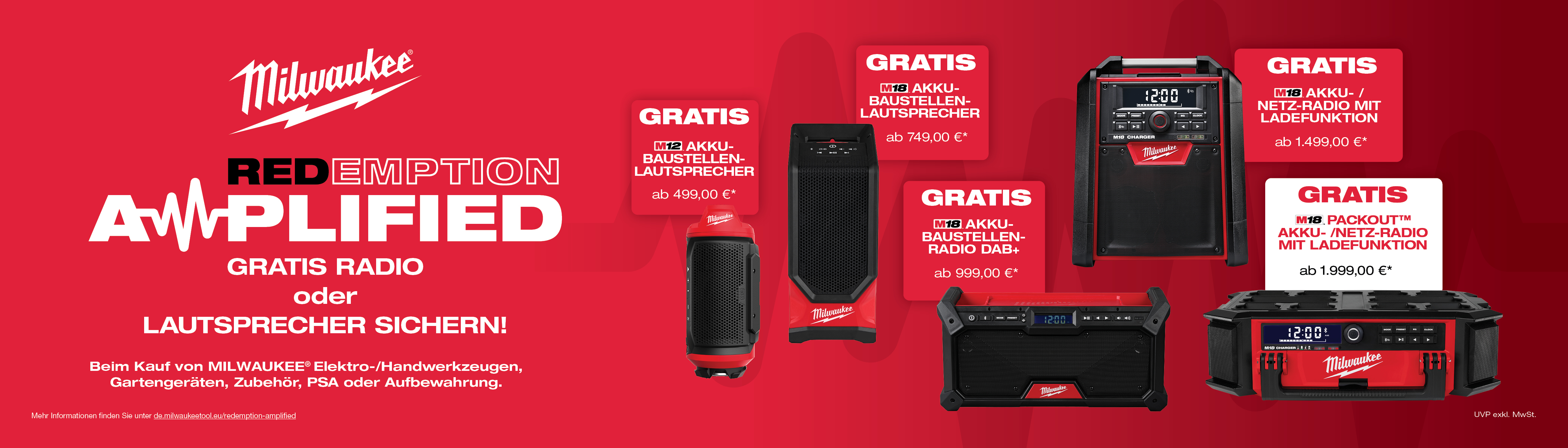 Beliebte Milwaukee Produkte – ideal, um die Aktionsstufen zu erreichen.