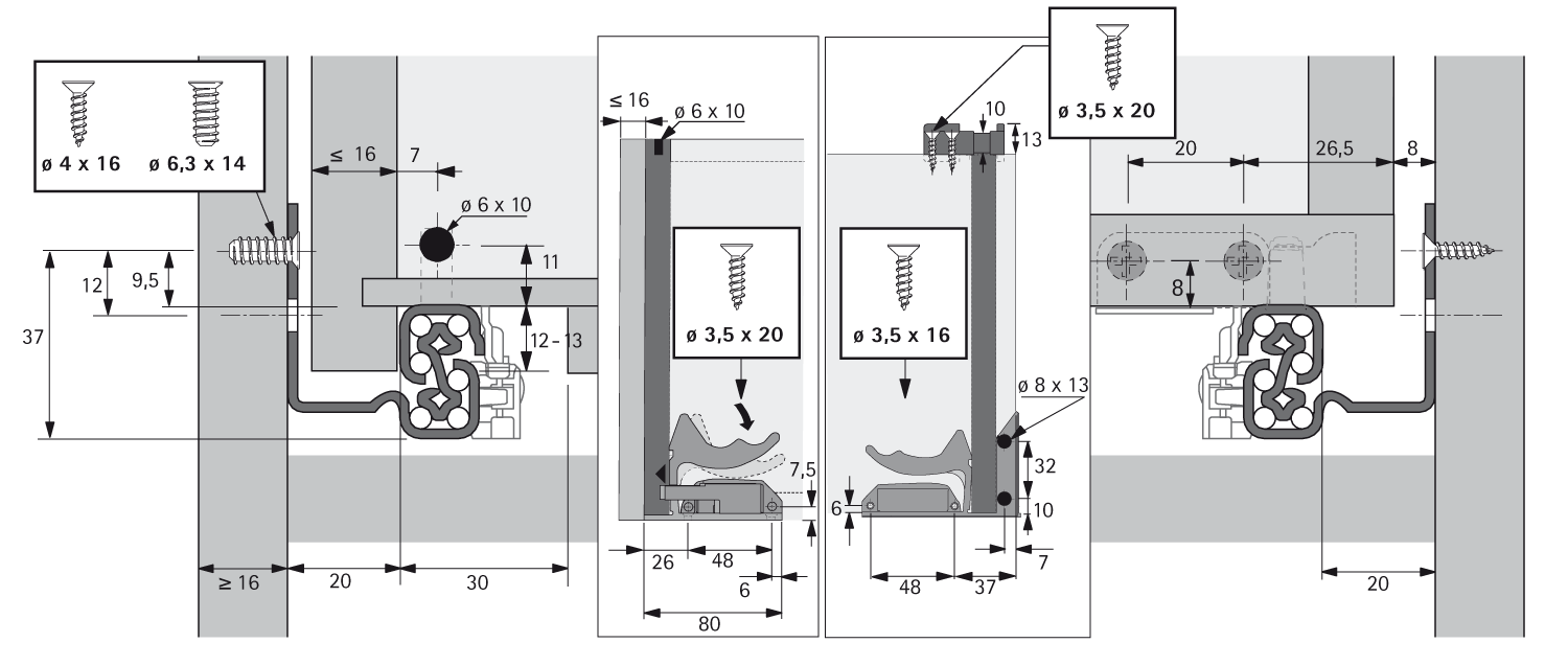 • Geeignet für Schubkästen mit Zargendicke bis 16 mm