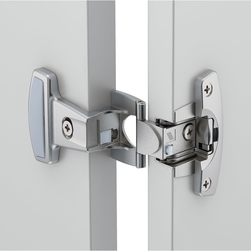 • Eingelenkscharnier mit Aufklipstechnik und sichtbarer Rolle • Qualitätseinstufung nach EN 15570, Level 3 • Für Büro-, Organisations- und Objektmöbel • Getrennte Montage von Topf und Grundscharnier • Aufklipsschnellmontage • Rollenlänge 39 mm, Rollendurchmesser siehe Zeichnung unten • Topfdurchmesser 35 mm • Topftiefe 13 mm • Integrierte Exzenter-Auflagenverstellung - 2 mm • Integrierte Exzenter-Höhenverstellung + 2 mm / - 2 mm • Zinkdruckguss vernickelt