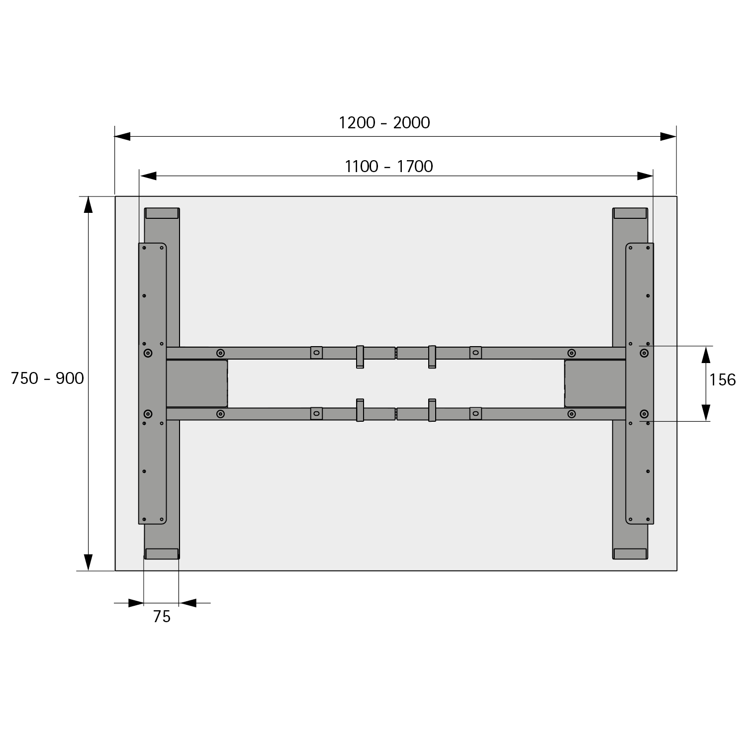 • Hubgewicht max. 120 kg bei gleichmäßiger Belastung des Tisches