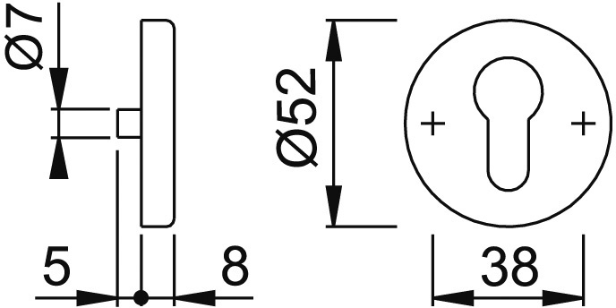 HOPPE Schlüsselrosettenpaar E42S; Produkttyp: Schlüsselrosettenpaar; Produkttyp (Hersteller): Schlüsselrosettenpaar; Anwendung: außen/innen; Form: rund; Befestigungsart: verdeckt verschraubt; Material: Edelstahl; Durchmesser: 52 mm; Material Unterkonstruktion: Stahl; Einsatzbereich: Tür; Türart: Vollblatt; Lochung: Profilzylinder gelocht; Farbe: grau; Farbton: edelstahl matt; Stütznocken: mit Stütznocken; Höhe: 8 mm