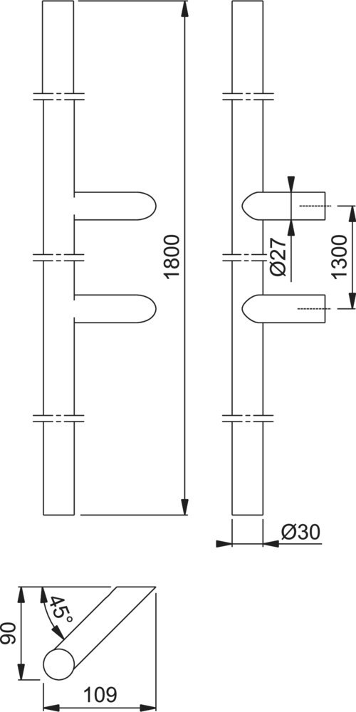 Hoppe Stangengriff E5012 D=30mm L=1800mm A=1300mm Schräg F69 -Inkl.Befestigung Bs1102 Ss 2011707