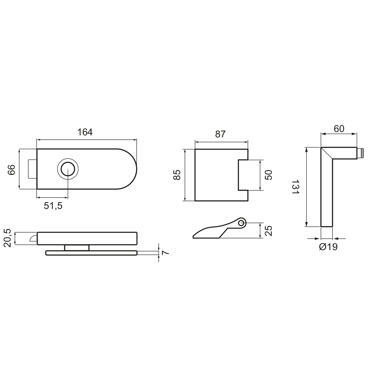 Karcher EGS28 370 0S 71, Glastürschloss mit 2 Bänder 3-tlg, Edelstahl matt, unverschließbar Bänder EGB 302, Rahmenteile für Holzzarge
