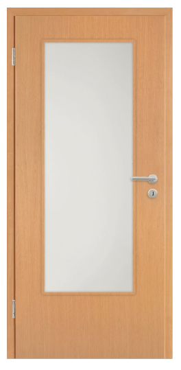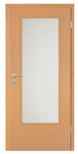 Die Kunex Zimmertür mit DIN-Lichtausschnitt (LA) und SR-Kante vereint natürliche Holzoptik mit funktionalem Design. Dank der vorbereiteten Öffnung für eine individuelle Verglasung eignet sich diese Tür hervorragend für Räume, in denen mehr Licht erwünscht ist, etwa Flure, Küchen oder Wohnbereiche.