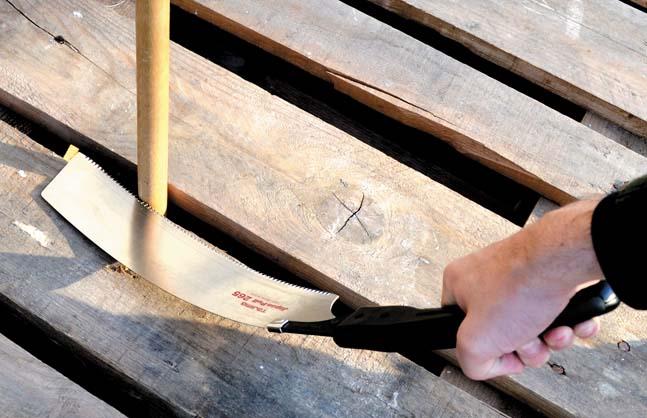 • Wechseln des Sägeblatts durch Abknicken des Handgriffes