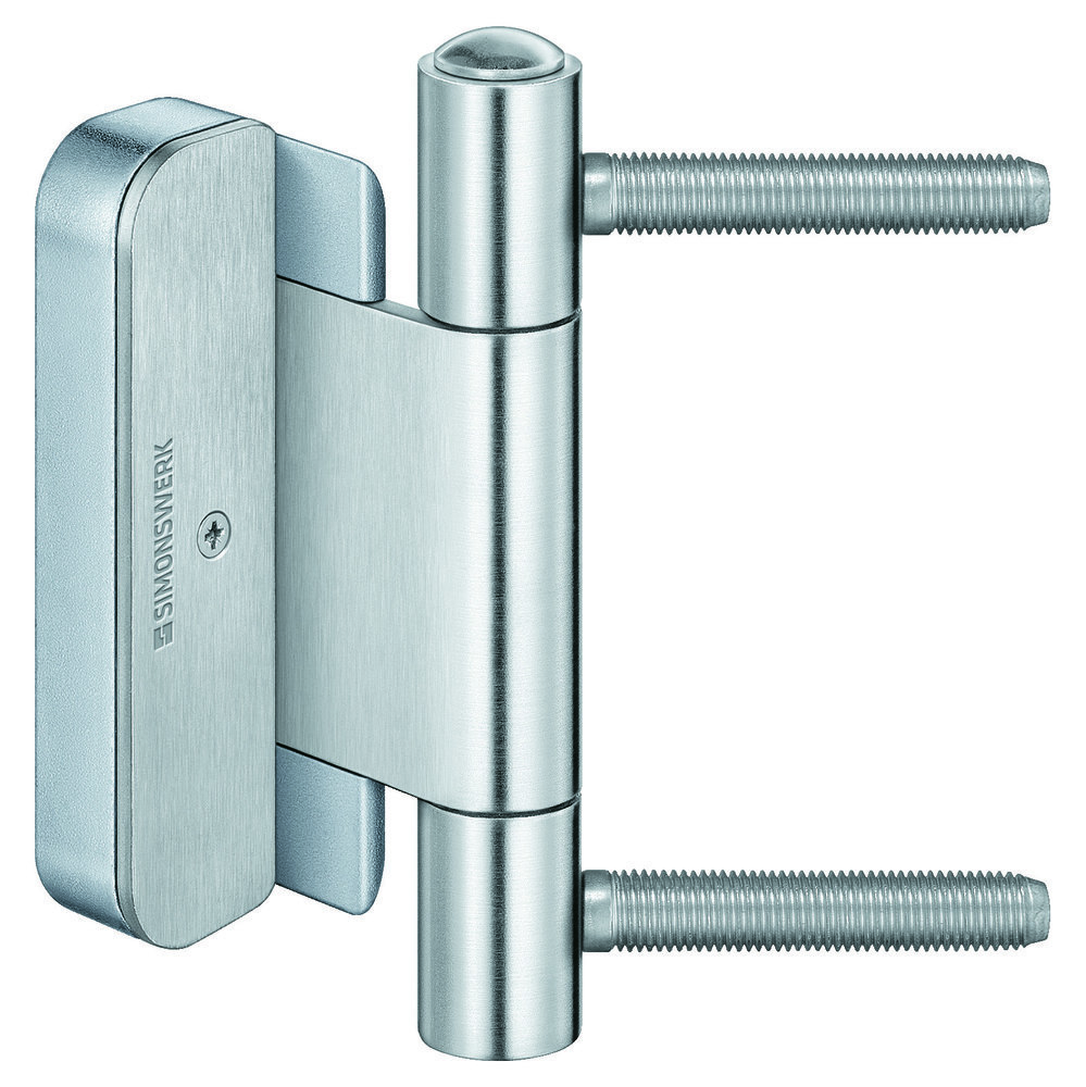 SIMONSWERK Einfräsband BAKA Protect 2040 2D FD MSTS; Produkttyp: Einfräsband; Produkttyp (Hersteller): Haustürband; Ausführung: mit Flügeldichtung; Bandkonstruktion: 3-teilig; Rahmenausführung: Blendrahmen,Blockzarge; Falzausführung: gefälzt; Durchmesser Bandrolle: 20 mm; Länge Bandrolle: 120 mm; Gesamtlänge: 120 mm; Tragkraft: 120 kg; Lagerung: Gleitlager; Einsatzbereich: Haustür; Türwerkstoff: Holz; Achsabstand Rahmenteil: 91 mm; Andruckverstellung min.: -3 mm; Andruckverstellung max.: 3 mm; Seitenverstellung min.: -3 mm; Seitenverstellung max.: 3 mm; Höhe Flügelteil: 100 mm; Breite Flügelteil: 31 mm; Befestigungsart Flügelteil: zum Aufschrauben; Befestigungsart Rahmenteil: zum Einbohren; Zapfendurchmesser Rahmenteil: 9,9 mm; Zapfenlänge Rahmenteil: 57 mm; Fräserdurchmesser: 20 mm; Norm: DIN EN 1935; CE Kennzeichnung: Ja; Stiftsicherung: mit Stiftsicherung; DIN-Richtung: DIN Links-Rechts; Material: Edelstahl; Farbton: edelstahl; Oberfläche: matt; kombinierbar mit: Zierhülse Nr. 11; Zusatzinformation: für Türen mit Überschlagdichtung; EN 1935 - Gebrauchsklasse: Klasse 2; EN 1935 - Dauerfunktionstüchtigkeit: Klasse 7; EN 1935 - Masse der Prüftür: Klasse 3; EN 1935 - Eignung für Feuer-/Rauchschutztüren: Klasse 0; EN 1935 - Sicherheit - Personenschutz: Klasse 1; EN 1935 - Korrosionsbeständigkeit (nach EN 1670): Klasse 5; EN 1935 - Schutz - Einbruchhemmung: Klasse 0; Klassifizierungsschlüssel EN 1935: 2 7 3 0 1 5 0 10; EN 1935 - Bandklasse: Klasse 10