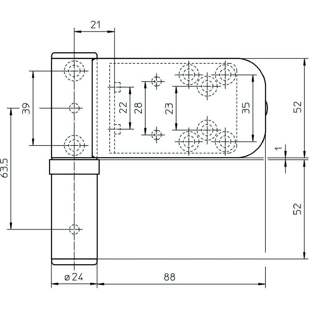 SIMONSWERK Aufschraubband SIKU 3D K 3130; Produkttyp: Aufschraubband; Produkttyp (Hersteller): Türband; Bandkonstruktion: zweiteilig; Verstellbarkeit: 3 Dimensional; Bandlappen: abgerundet; Lagerung: Gleitlager; Falzausführung: gefälzt; Rahmenausführung: Kunststoffprofil; Einsatzbereich: Haustür; Kopfausbildung: mit Flachkopf; Tragkraft: 120 kg; Tragkraft bei 2 Bändern max.: 120 kg; Andruckverstellung min.: -2 mm; Andruckverstellung max.: 2 mm; Höhenverstellung min.: -1 mm; Höhenverstellung max.: 5 mm; Seitenverstellung min.: -5 mm; Seitenverstellung max.: 5 mm; Breite Flügelteil: 88 mm; Höhe Flügelteil: 52 mm; Durchmesser Bandrolle: 24 mm; Länge Bandrolle: 105 mm; Norm: DIN EN 1935; Türwerkstoff: Kunststoff; DIN-Richtung: DIN Links-Rechts; Stiftsicherung: mit Stiftsicherung; Material: Stahl; Farbe: weiß; Farbton: verkehrsweiß; Farbe (RAL): RAL 9016; Oberfläche: pulverbeschichtet; Aufdeck/Überschlag min.: 18 mm; Aufdeck/Überschlag max.: 22 mm; EN 1935 - Gebrauchsklasse: Klasse 4; EN 1935 - Dauerfunktionstüchtigkeit: Klasse 7; EN 1935 - Masse der Prüftür: Klasse 6; EN 1935 - Eignung für Feuer-/Rauchschutztüren: Klasse 0; EN 1935 - Sicherheit - Personenschutz: Klasse 1; EN 1935 - Korrosionsbeständigkeit (nach EN 1670): Klasse 5; EN 1935 - Schutz - Einbruchhemmung: Klasse 1; EN 1935 - Bandklasse: Klasse 13; Klassifizierungsschlüssel EN 1935: 4 7 6 0 1 5 1 13