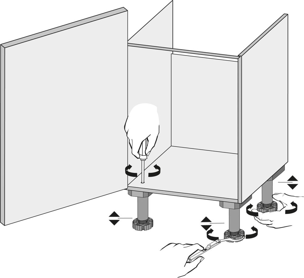 • Zur Verstellung vom Sockelfuß Korrekt