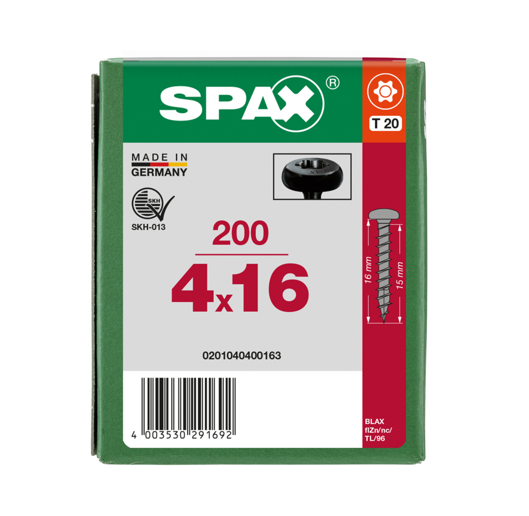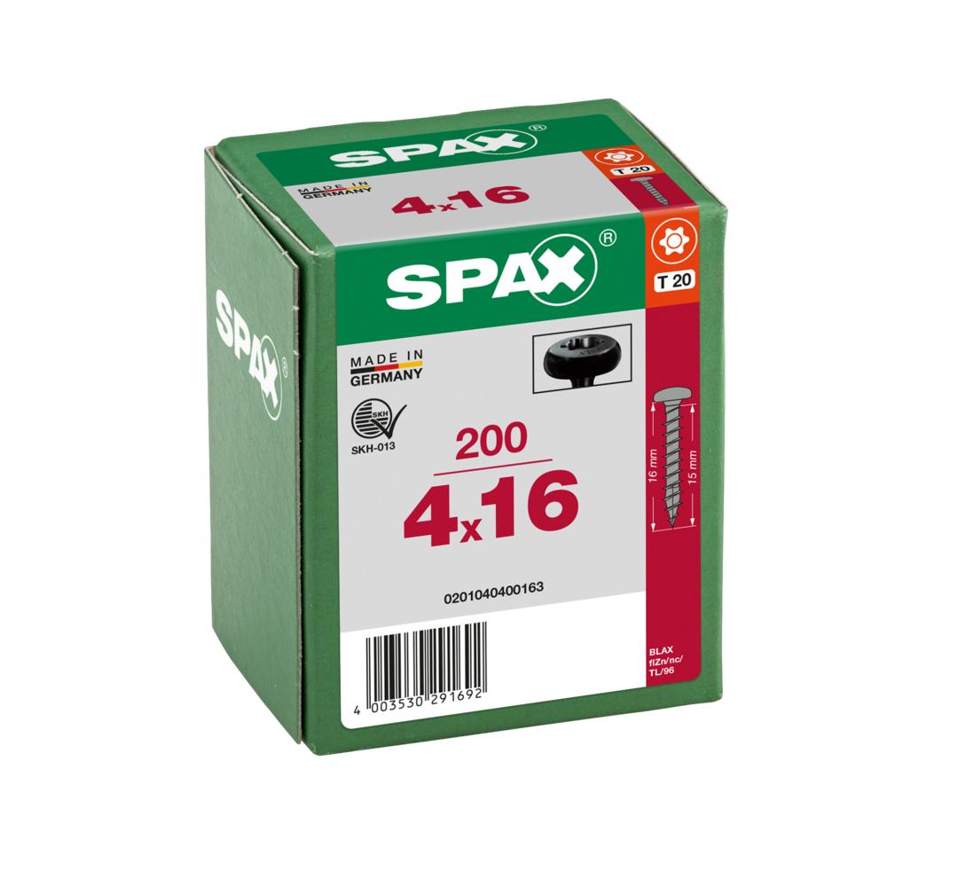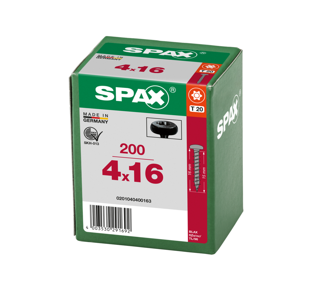Spax Schrauben Halbrundkopf T-STAR PLUS T20 Vollgewinde BLAX 200Stk 4X16mm 0201040400163