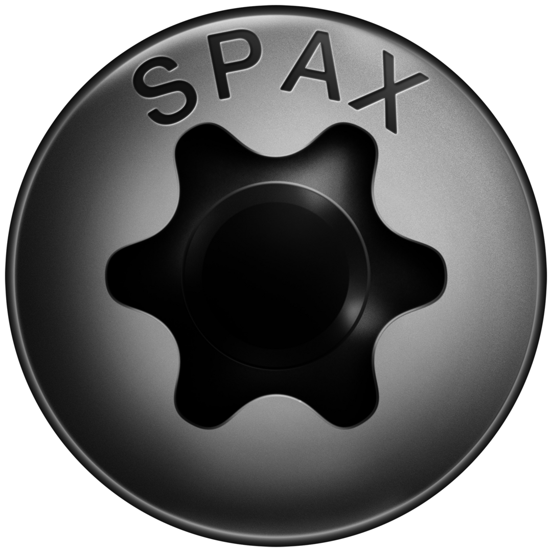 Der SPAX-typische Antrieb T-STAR plus ist ein sogenannter Innensechsrund. Durch diese Form vergrößert sich die Angriffsfläche bei unserem T-STAR plus, und die T-STAR plus-Bits sitzen optimal im Schraubenkopf. Die bestmögliche Kraftübertragung von Schrauber auf Schraube durch T-STAR plus ermöglicht ein zügiges Arbeiten, und das wesentlich effizienter als bei allen anderen Antrieben. Dass Schraubverbindungen bei Bedarf auch gut aussehen können, dafür ist unsere Universalschraube mit Halbrundkopf (Panhead) ein Beispiel. Der kugelförmige Schraubenkopf mit T-STAR plus oder Kreuzschlitz Z -Antrieb eignet sich für die sichtbare Befestigung von Metallbeschlägen auf Holz, die Kopfunterseite liegt flach am Metall an. Im Gegensatz zum Teilgewinde erstreckt sich das Vollgewinde über die gesamte Schraubenlänge. Je mehr Gewindegänge eine Schraube hat, desto größer sind die Zug- und Druckkräfte, die darüber von Schraube auf Holz abgeleitet werden können. Unsere Vollgewindeschrauben werden vor allem für hochbelastbare Holzverbindungen eingesetzt. Der Begriff 4CUT steht für die vierkantige Ausformung der Schraubenspitze. Diese Kanten verdrängen die Holzfasern während des Eindrehens und schaffen Platz für den Kerndurchmesser der Schraube. Der Spreizdruck, den der Kern im Holz ausübt, wird so reduziert und ein Aufspleißen des Holzes in Randnähe verhindert. Auch das nötige Drehmoment des Akkuschraubers wird verringert, da der Kern der Schraube sich nicht ins Holz „quetschen“ muss. BLAX-Oberfläche in einem kräftigen, metallischen Schwarzfarbton. Einsetzbar nach EN 1995-1-1 in Nutzungsklasse 1
