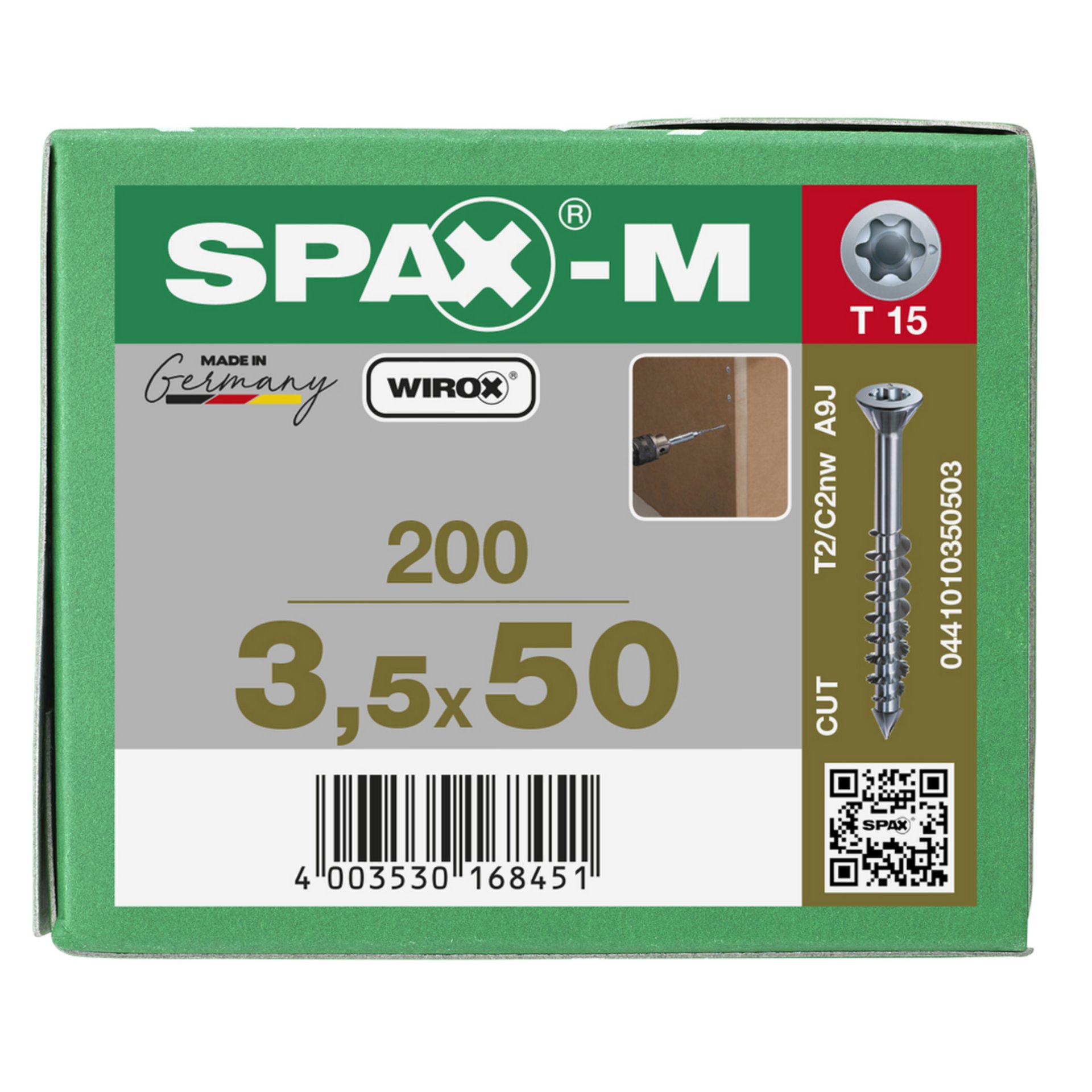 Spax Schrauben M Torx MDF 3,5X50 T15 Senkkopf hell verzinkt 200Stk 441010350503