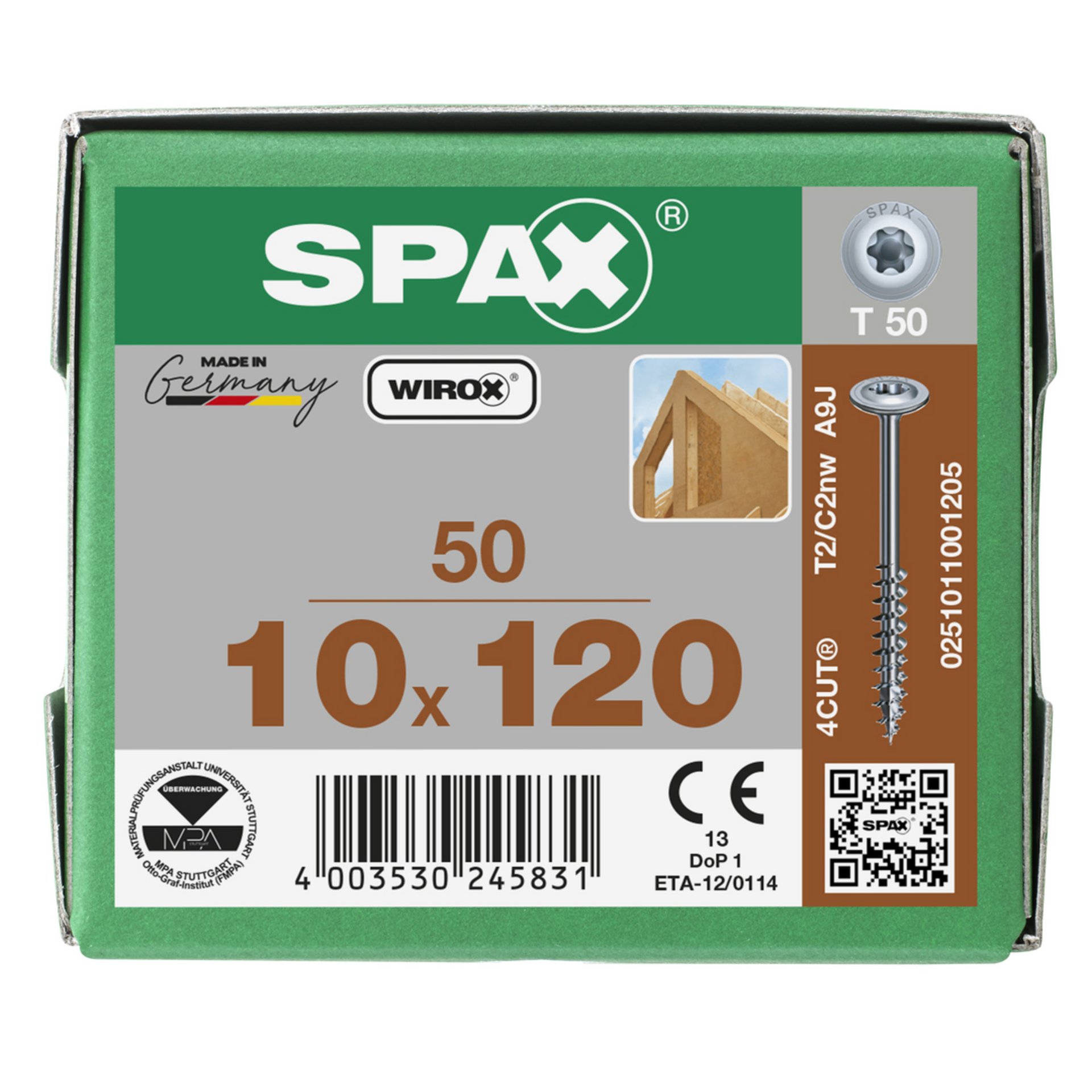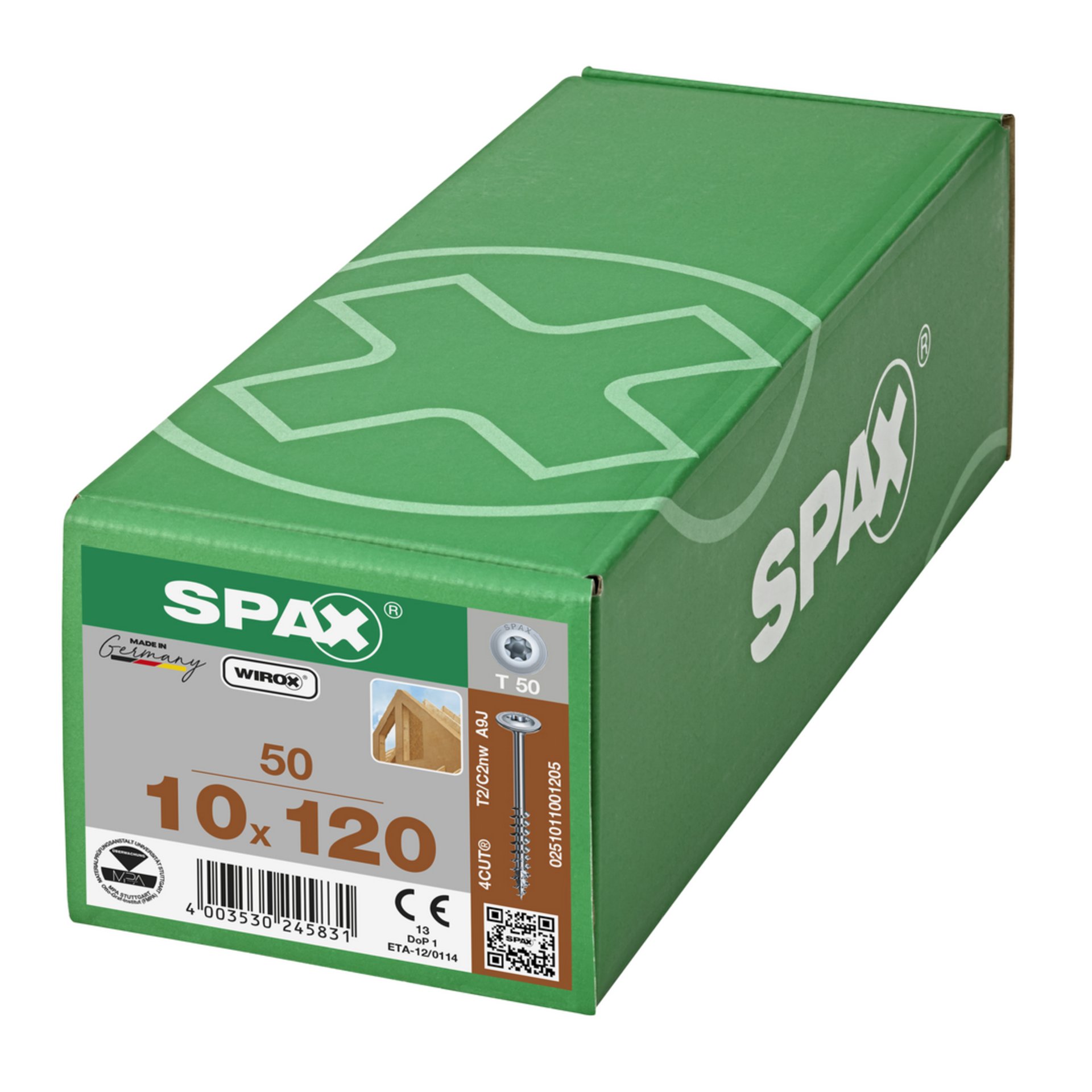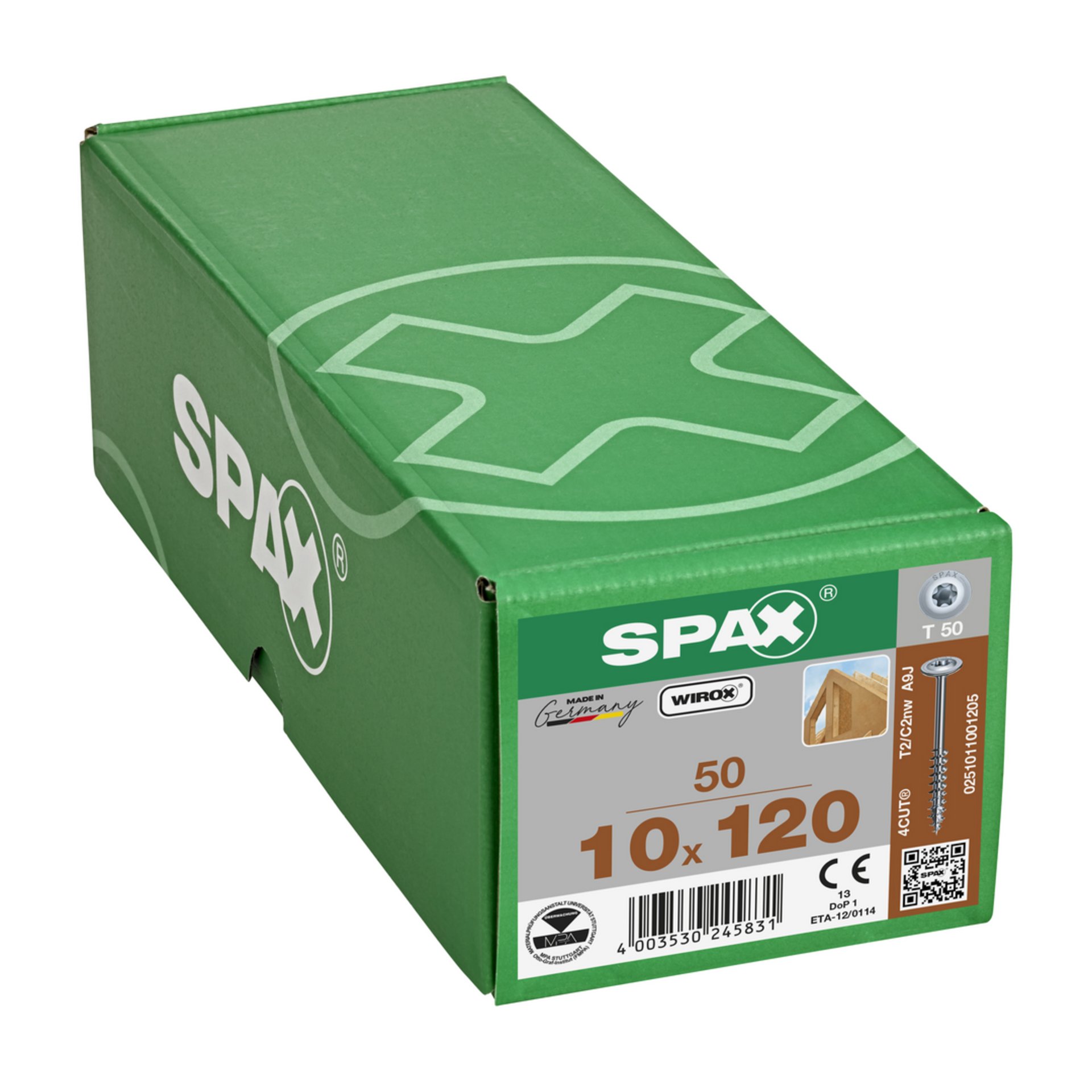 Spax Schrauben Torx Tellerkopf 10,0X120 T50 Teilgewinde Wirox m. 4Cut-Spitze 50Stk 251011001205