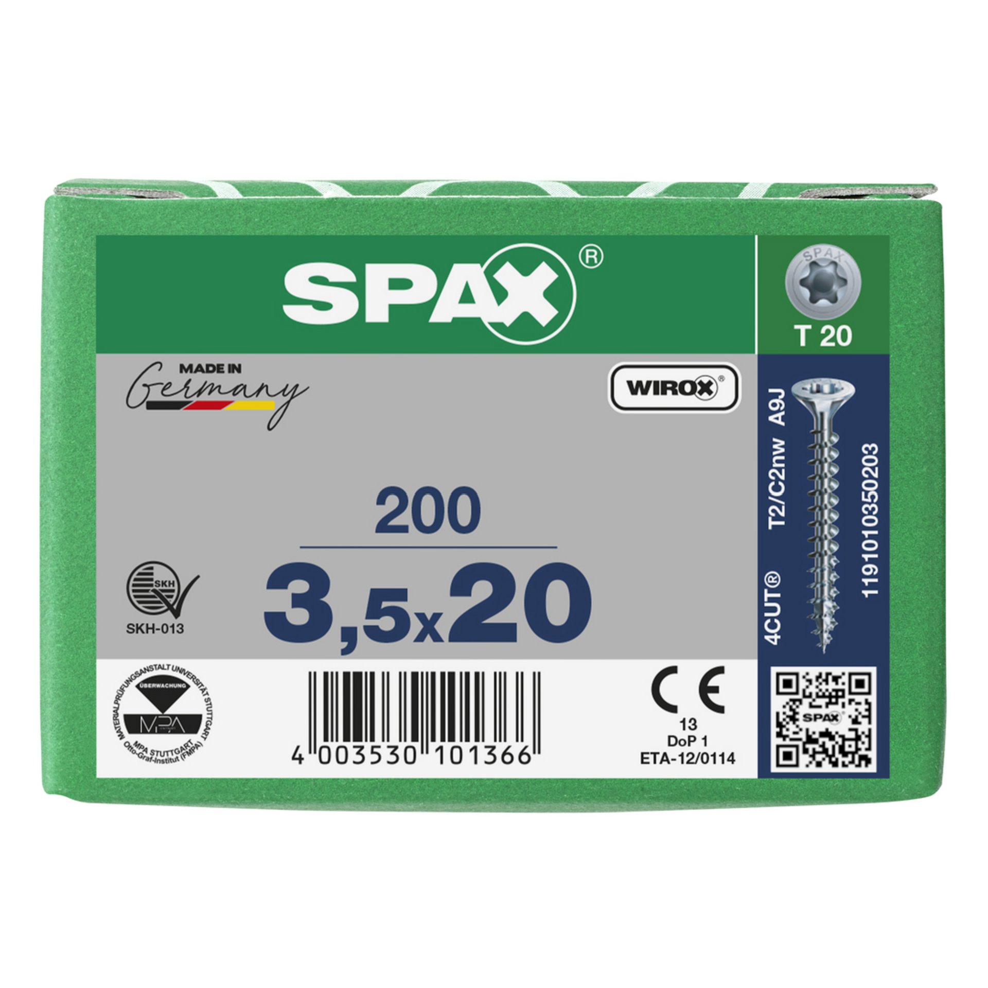Spax Schrauben verzinkt Senkkopf 3,5X20 Torx Kleinpackung 200Stk 1191010350203