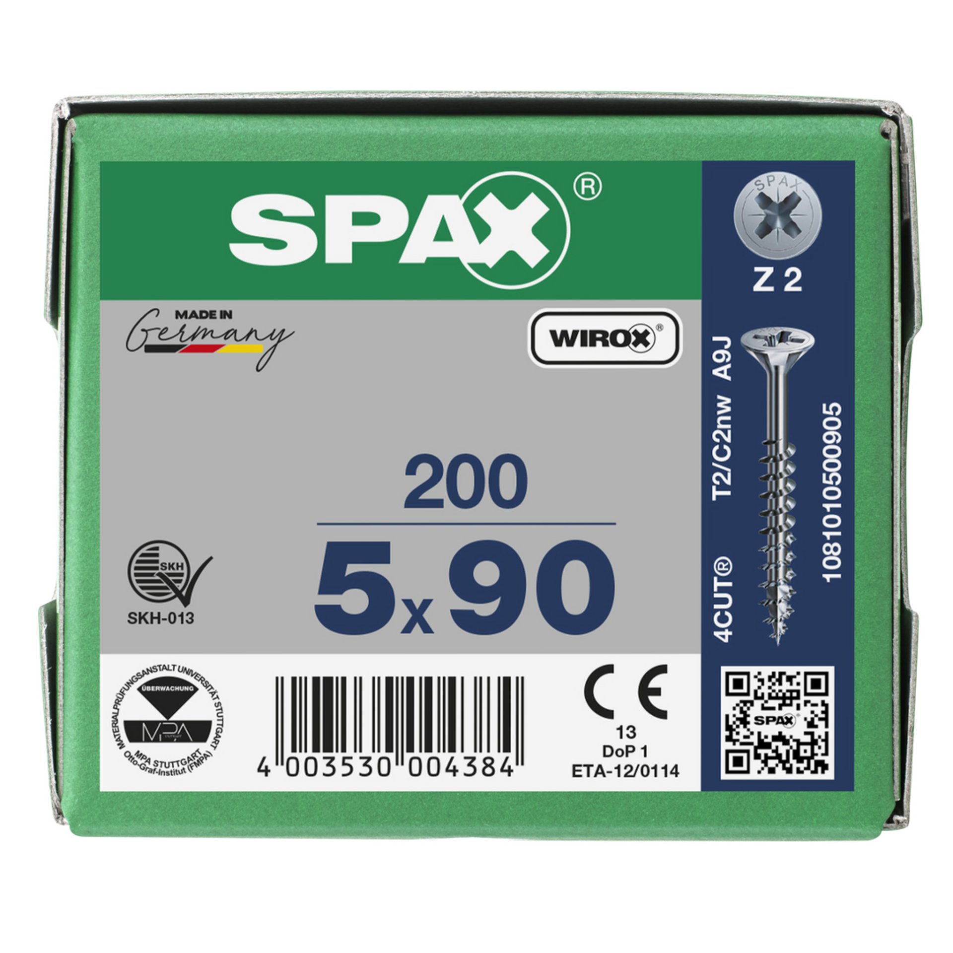 Spax Schrauben verzinkt Senkkopf 5,0X90 PZ2 200Stk 1081010500905