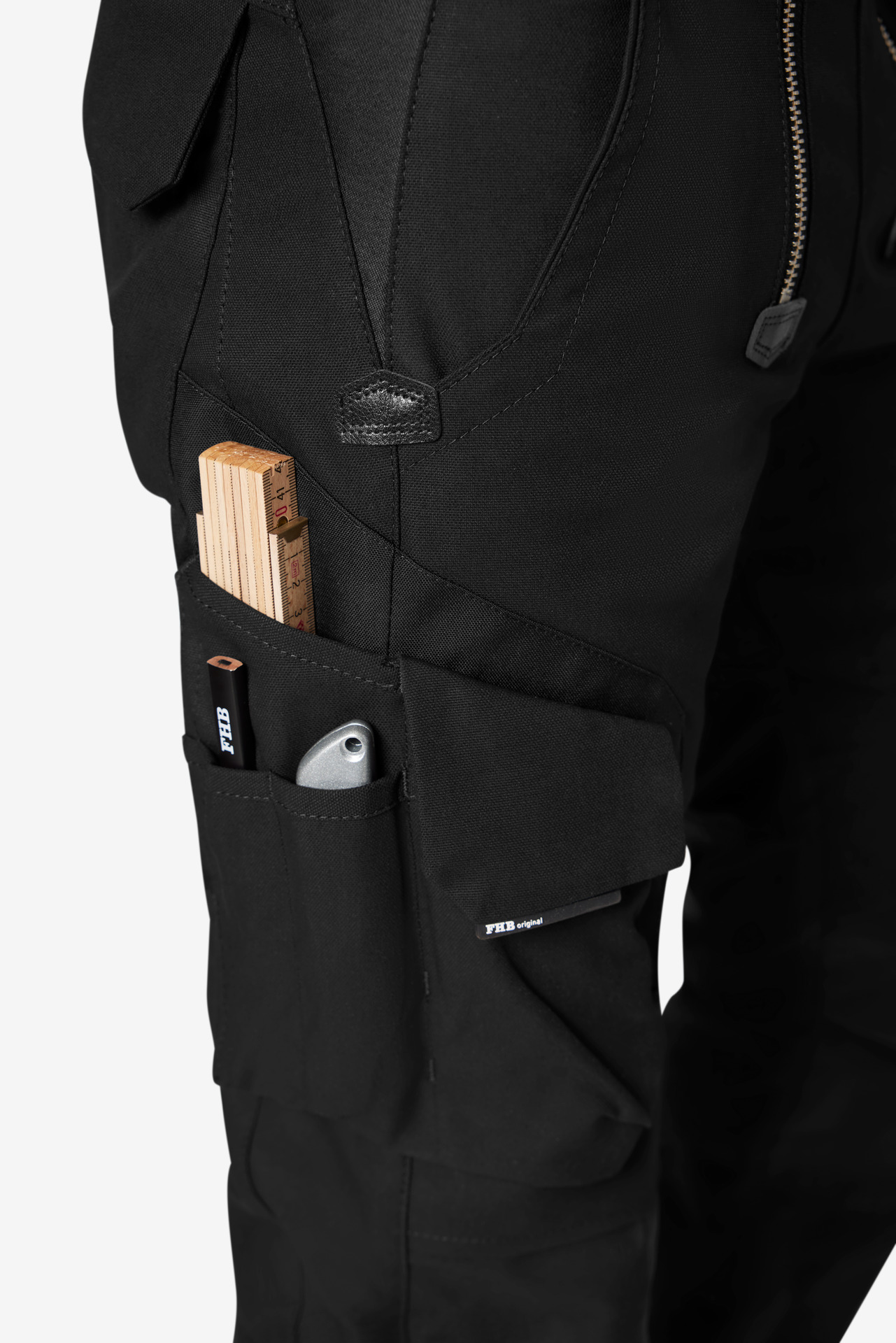 • Jeweils eine Handy- und eine Zollstocktasche links und rechts